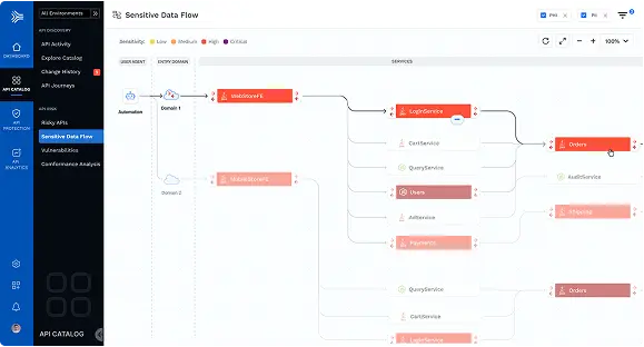 Discover and catalog all APIs in your environment - internal, external, 3rd-party, and partner, and sensitive data flows between them.