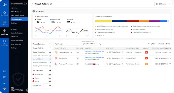 Automatically detect and stop known and unknown API attacks, business logic abuse attacks, as well as API abuse, fraud, and sensitive data exfiltration.